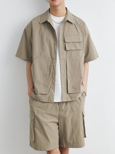 Men's Plus Size Button Up Short Sleeve Shirt and Shorts Set