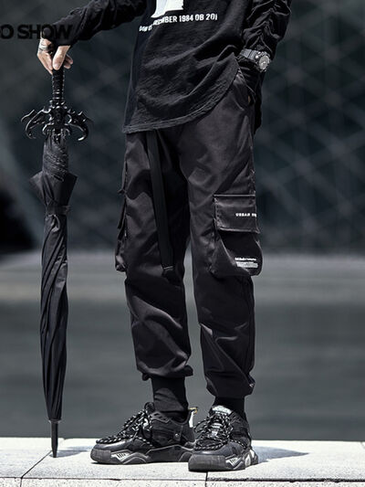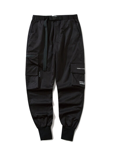 Men's Plus Size Casual Cargo Joggers with Elastic Cuffs