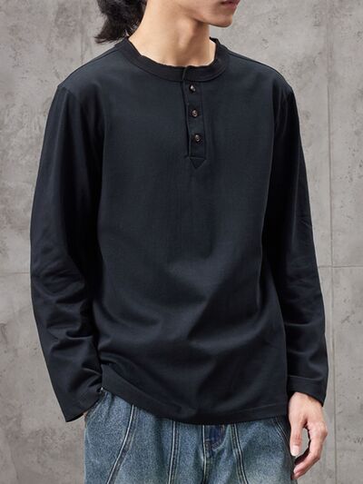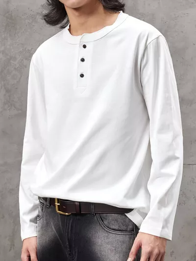 Men's Plus Size Casual Henley Long Sleeve T-Shirt