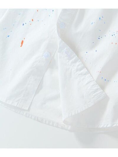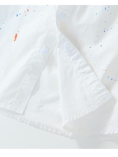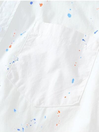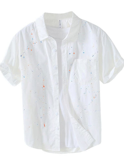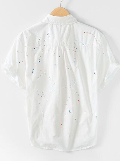 Men's Plus Size Casual Paint Splatter Short Sleeve Button-Up Shirt