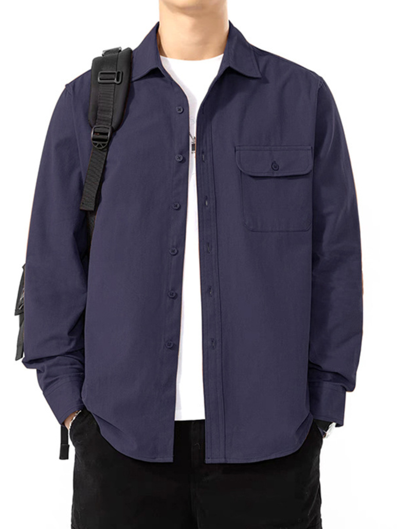 Men's Plus Size Casual Solid Color Long Sleeve Shirt