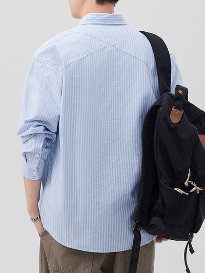 Men's Plus Size Casual Striped Long Sleeve Shirt