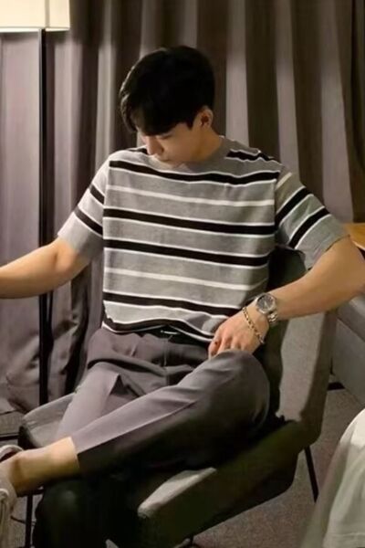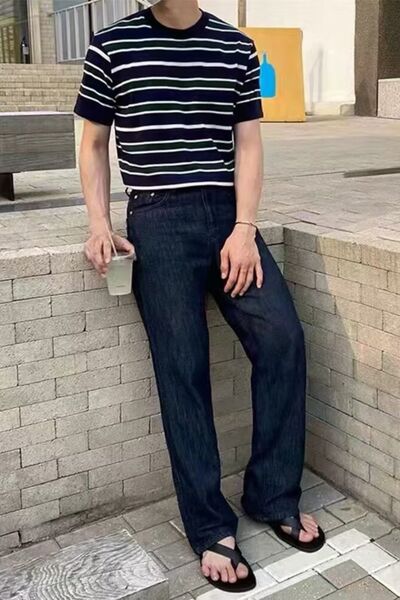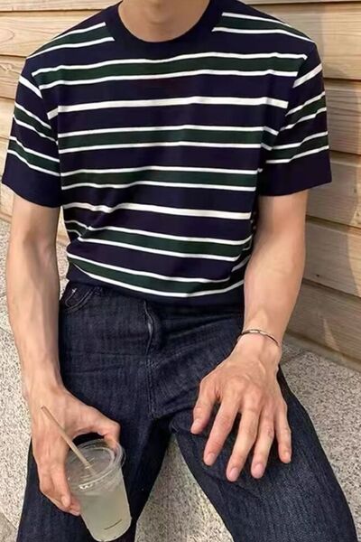 Men's Plus Size Casual Striped Short Sleeve T-Shirt