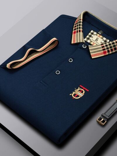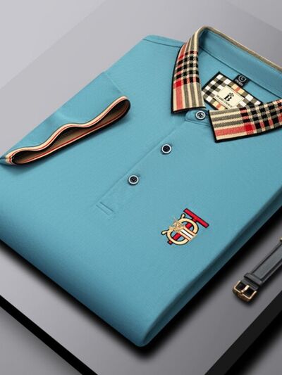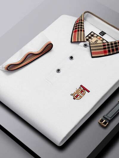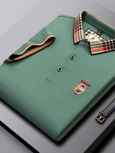 Men's Plus Size Classic Plaid Collar Casual Polo Shirt