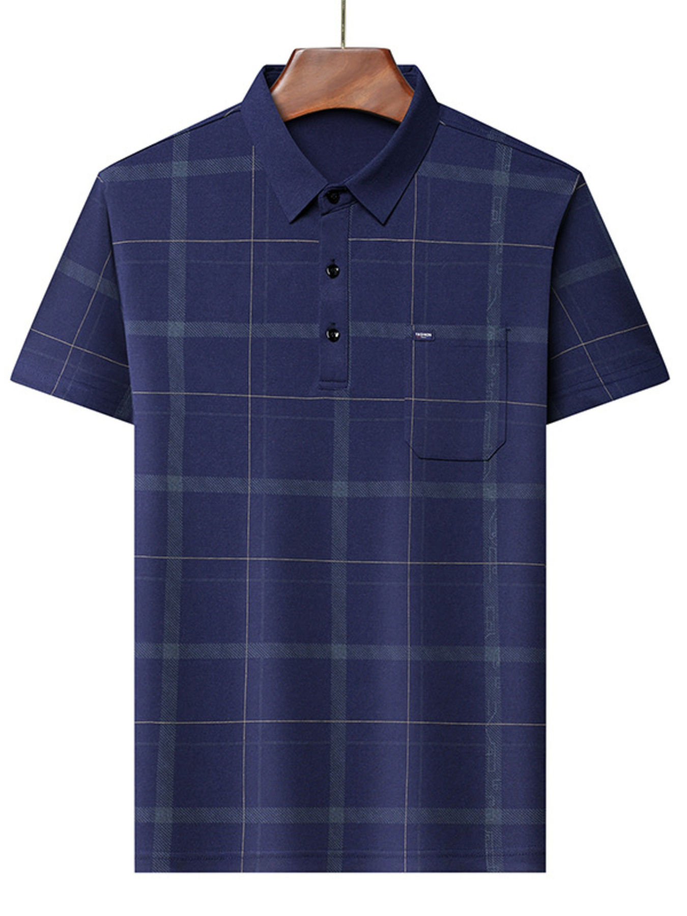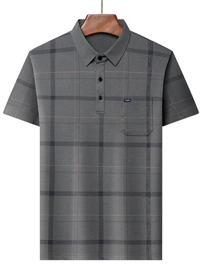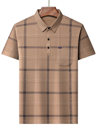 Men's Plus Size Classic Plaid Pattern Polo Shirt with Pocket