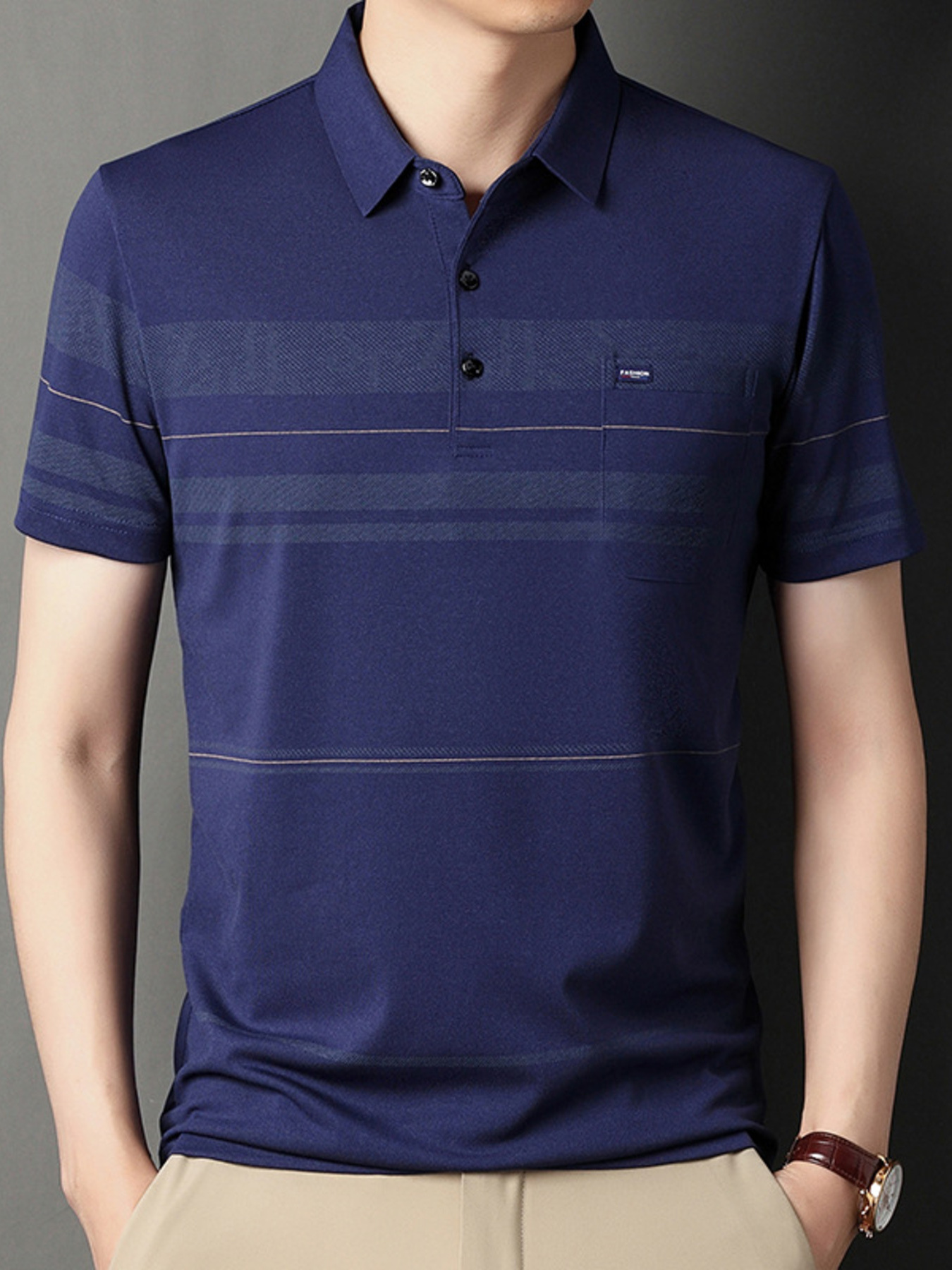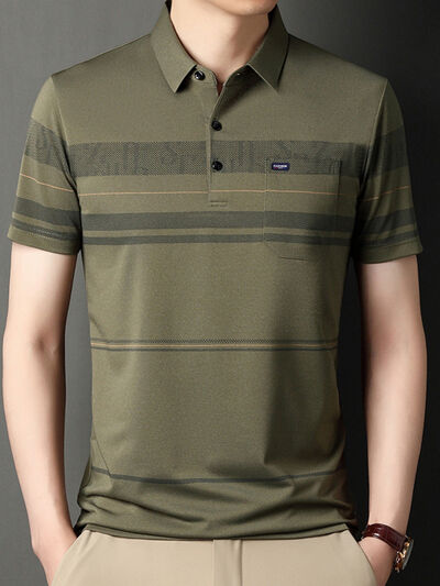 Men's Plus Size Classic Striped Business Casual Polo Shirt