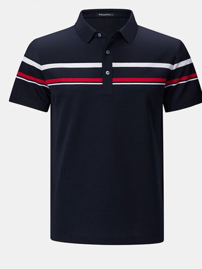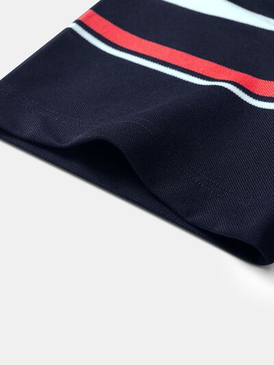 Men's Plus Size Classic Striped Short Sleeve Polo Shirt