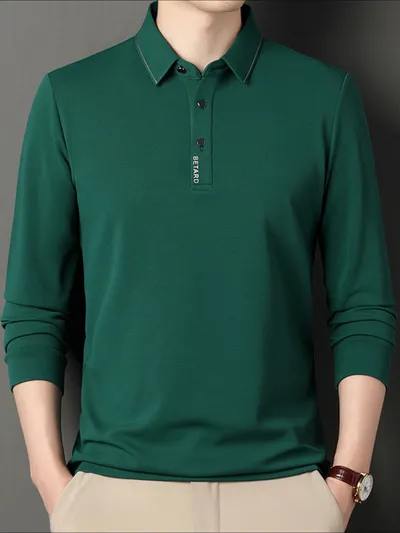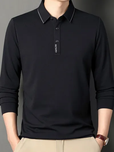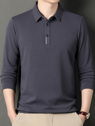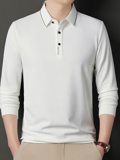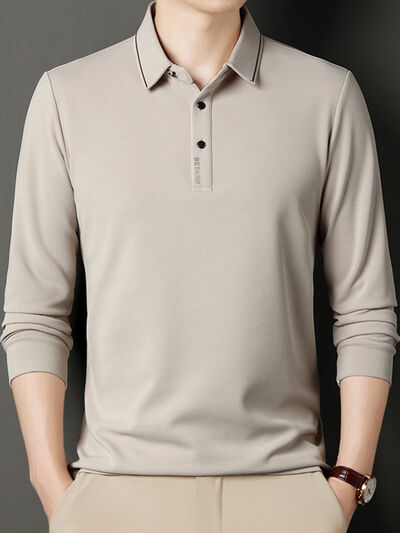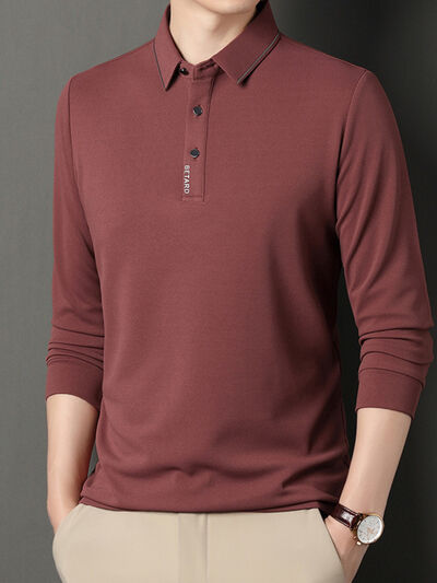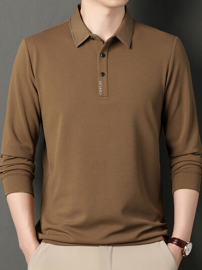Men's Plus Size Collared Neck Long Sleeve Polo