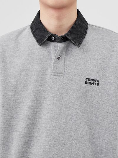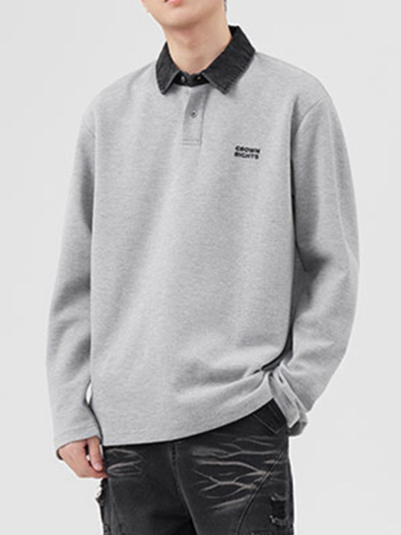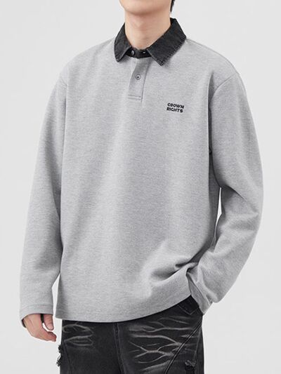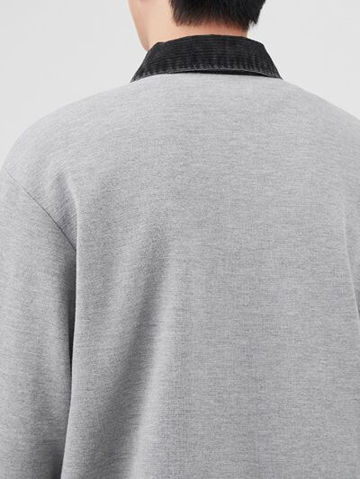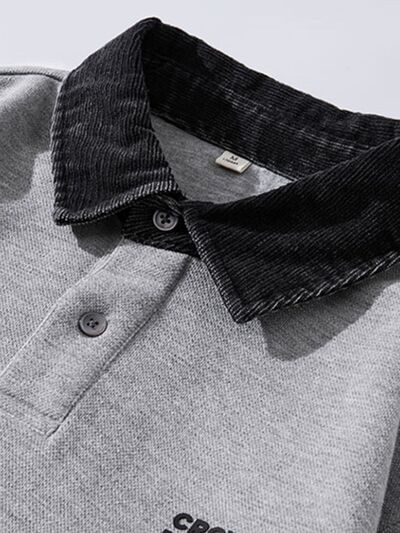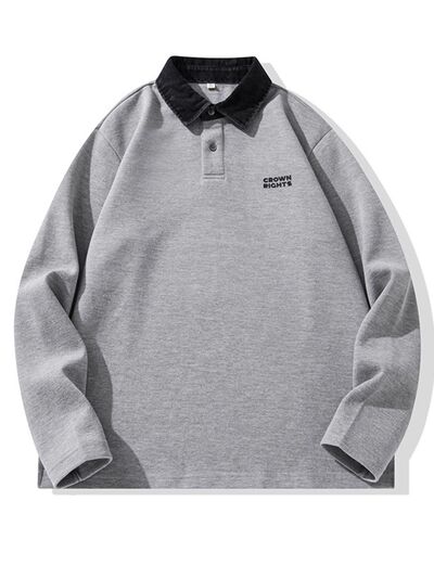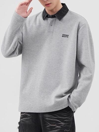 Men's Plus Size Collared Neck Long Sleeve Polo