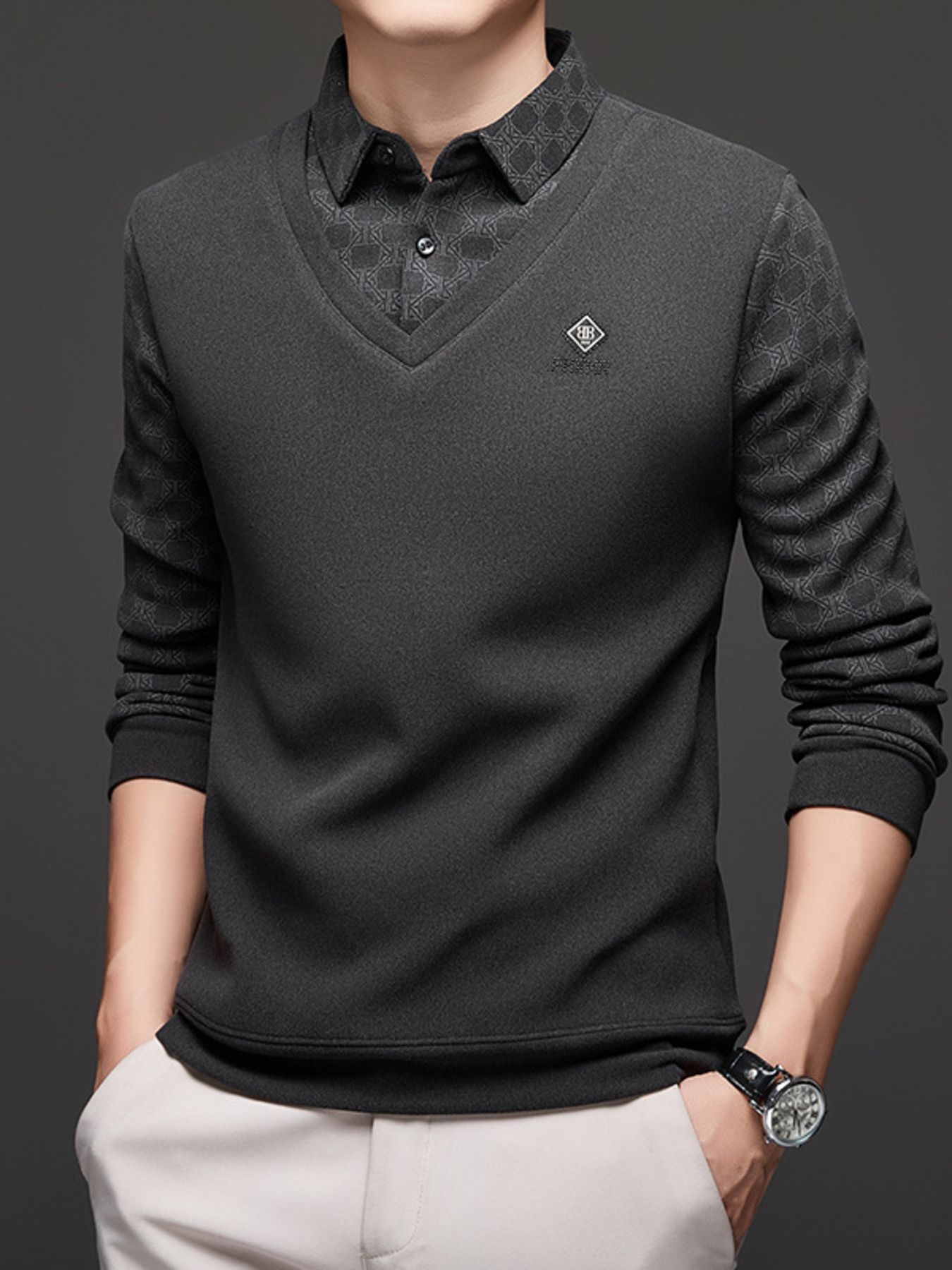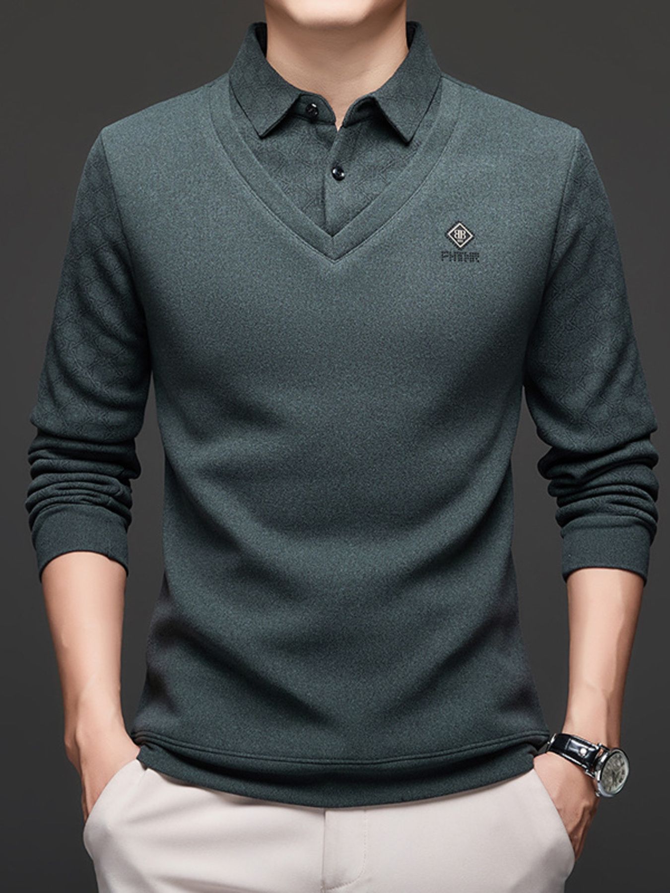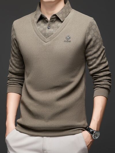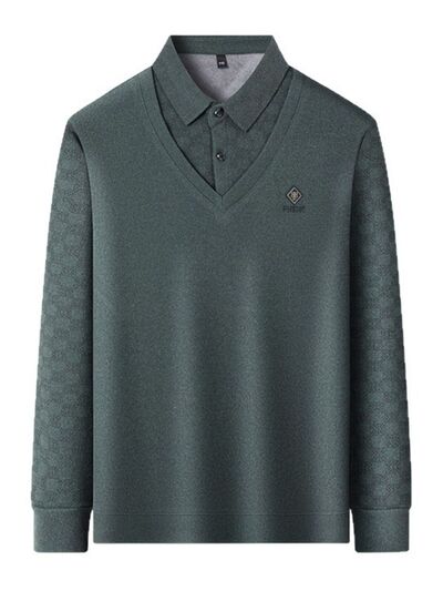 Men's Plus Size Collared Neck Long Sleeve Polo