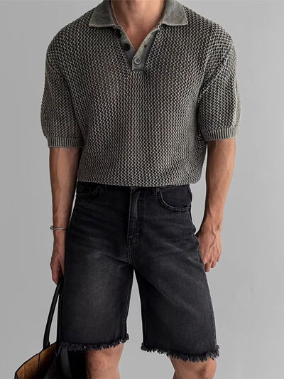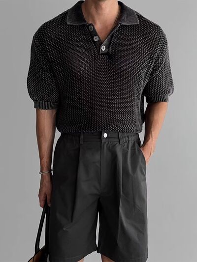 Men's Plus Size Collared Neck Short Sleeve Mesh Knit Polo