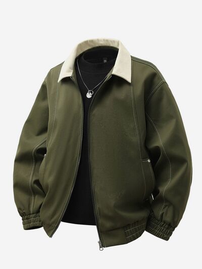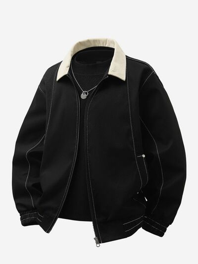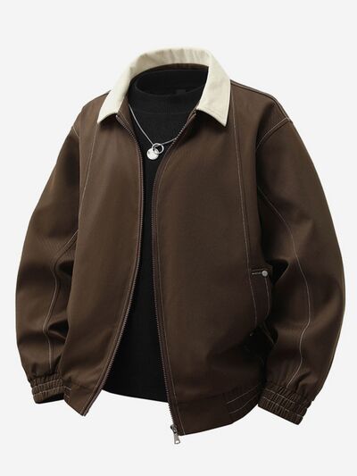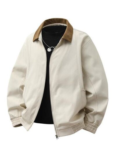 Men's Plus Size Collared Neck Zip-Up Jacket