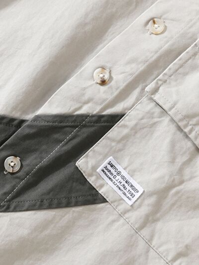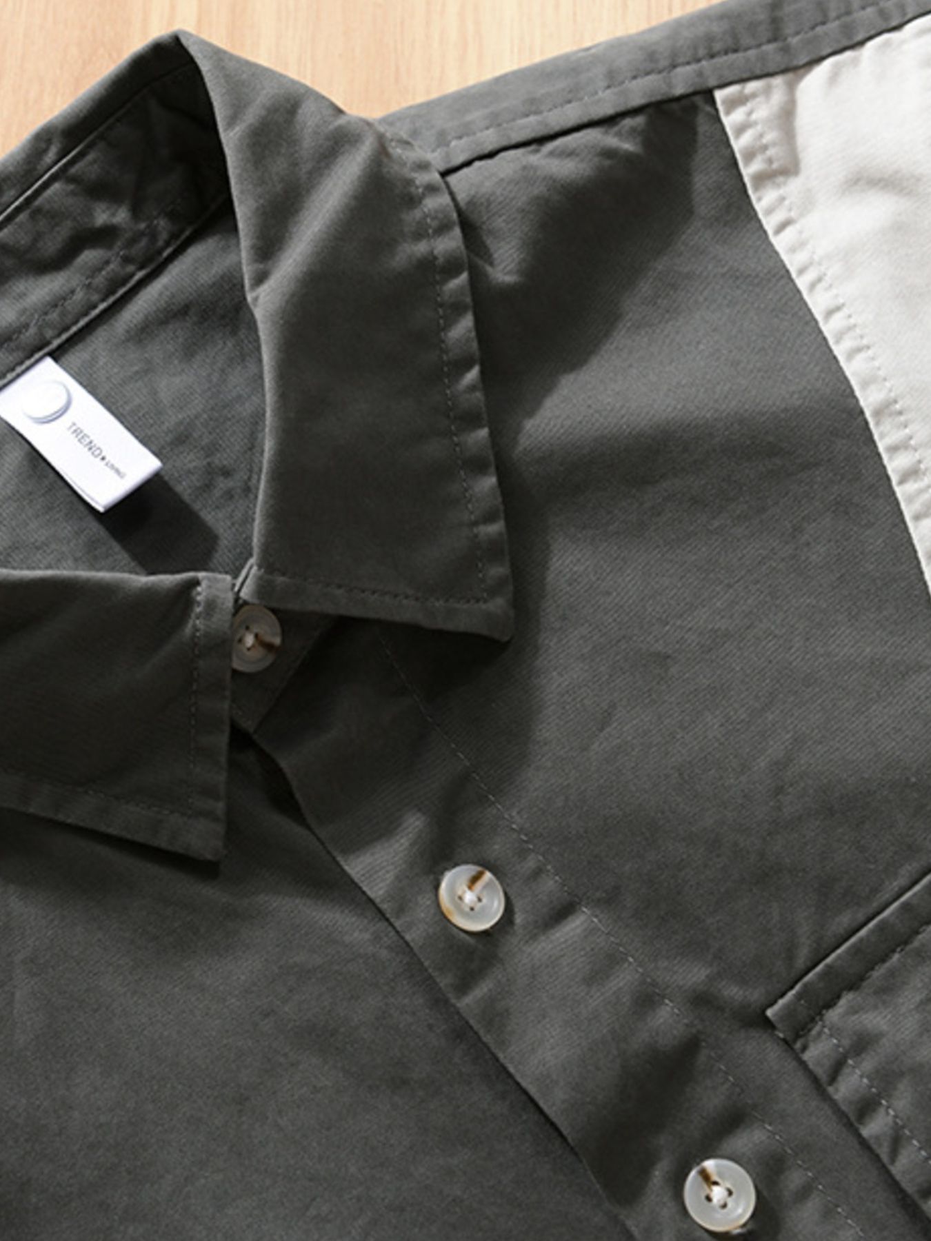 Men's Plus Size Color Block Casual Long Sleeve Shirt