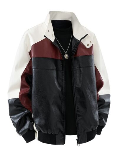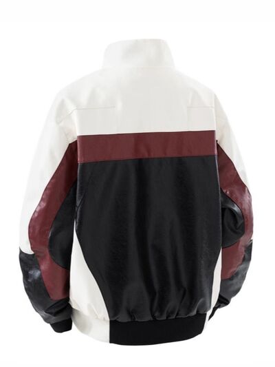 Men's Plus Size Color Block Faux Leather Bomber Jacket