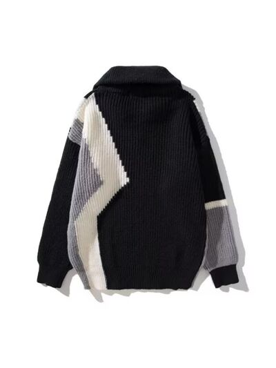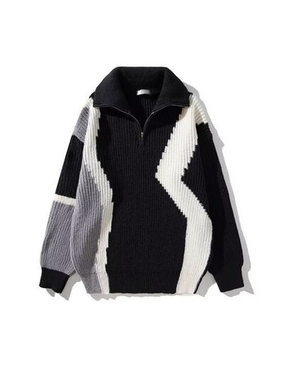 Men's Plus Size Color Block Zip Collar Sweater