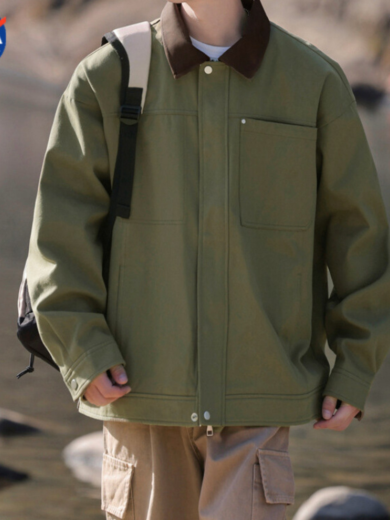Men's Plus Size Contrast Collar Casual Jacket