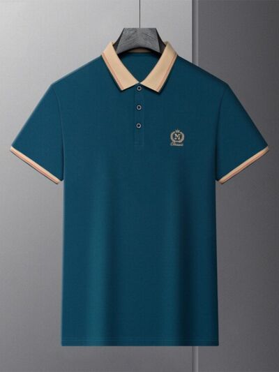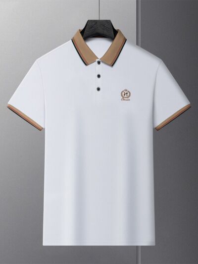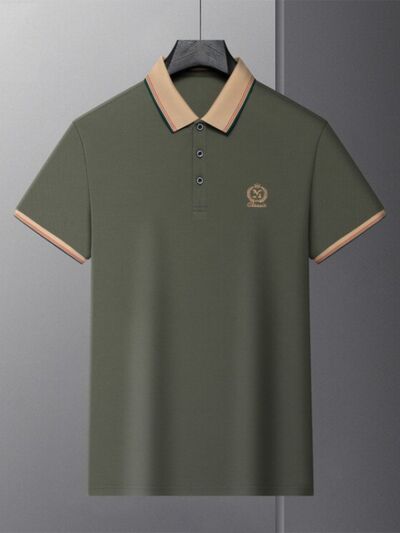 Men's Plus Size Contrast Collar Polo with Embroidered Logo