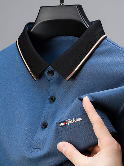 Men's Plus Size Contrast Collar Short Sleeve Polo