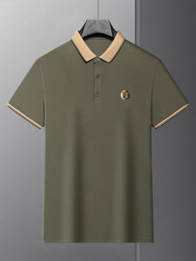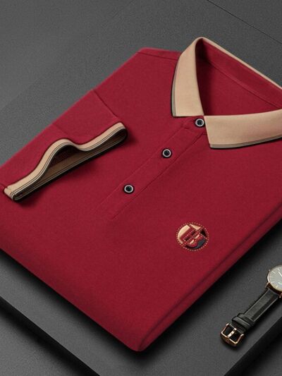 Men's Plus Size Contrast Collar Short Sleeve Polo Shirt