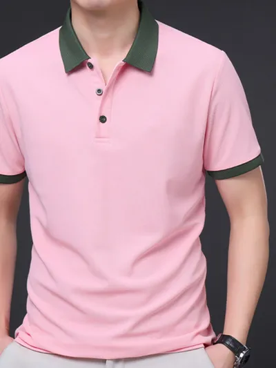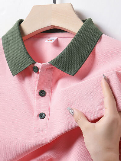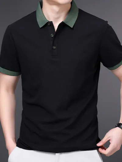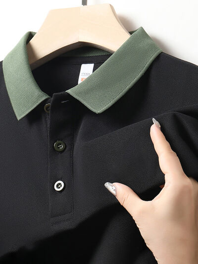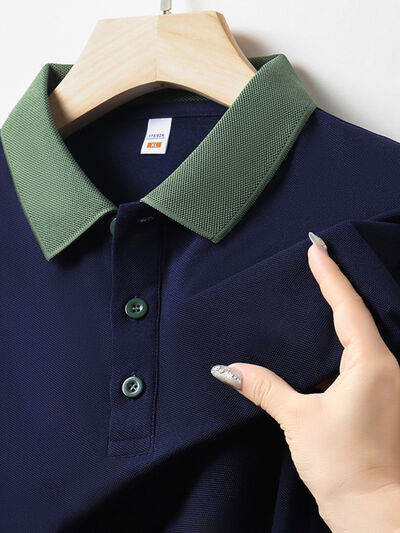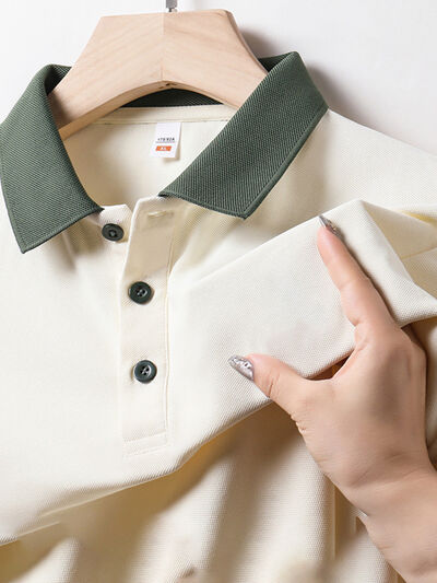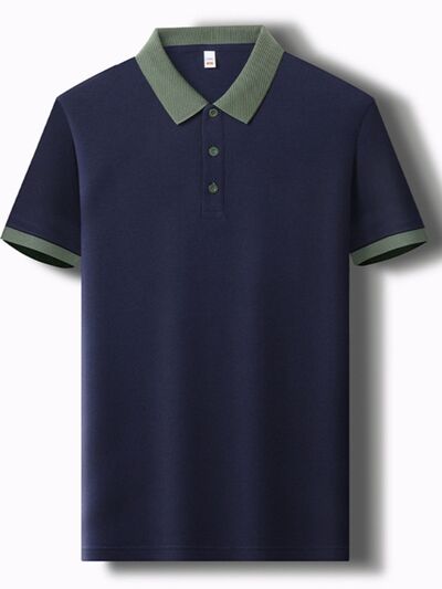 Men's Plus Size Contrast Collar Short Sleeve Polo Shirt