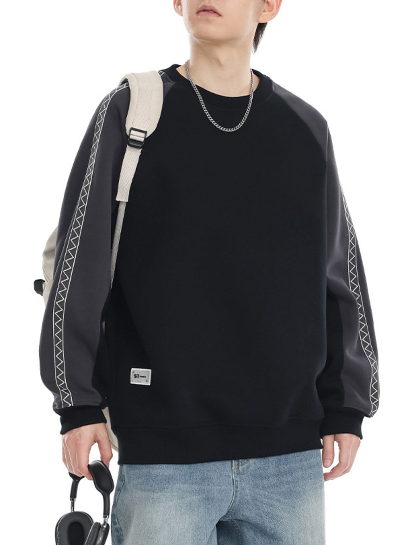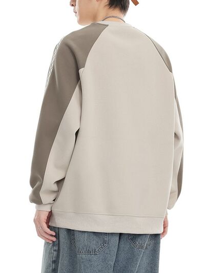 Men's Plus Size Contrast Raglan Sleeve Casual Sweatshirt