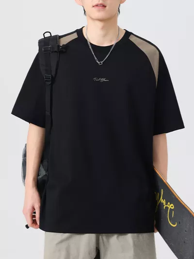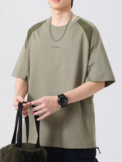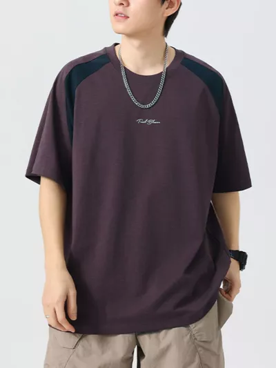 Men's Plus Size Contrast Raglan Sleeve Casual T-Shirt