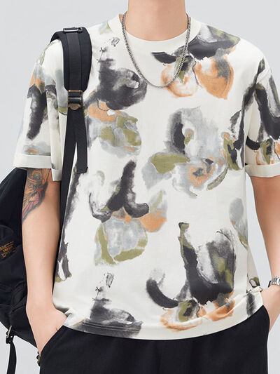 Men's Plus Size Contrast Round Neck Short Sleeve T-Shirt