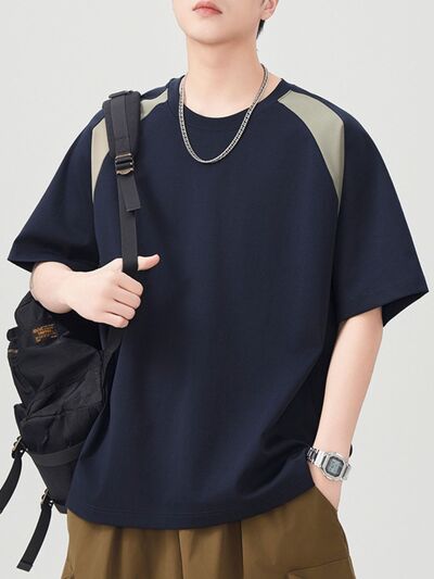 Men's Plus Size Contrast Round Neck Short Sleeve T-Shirt