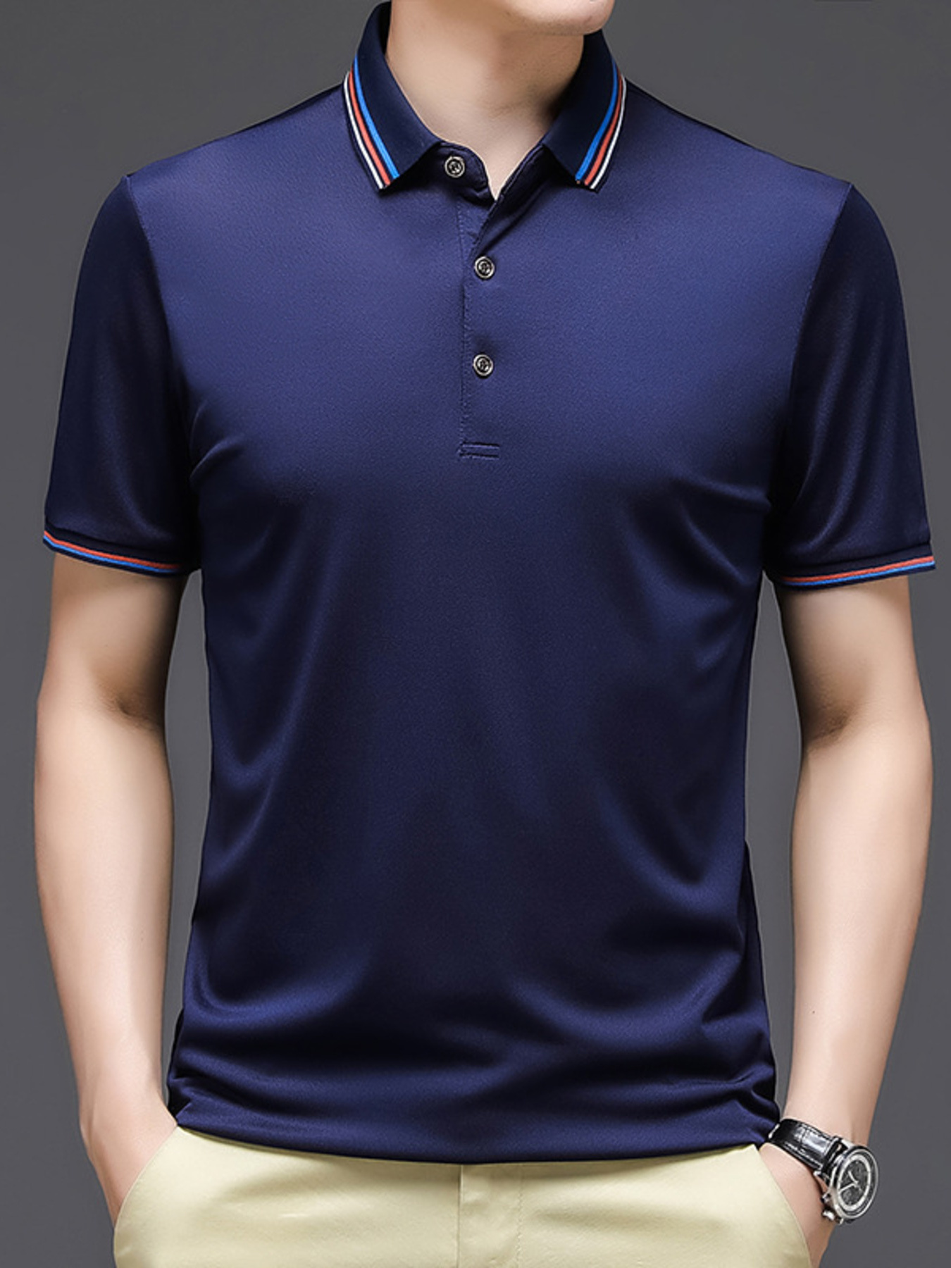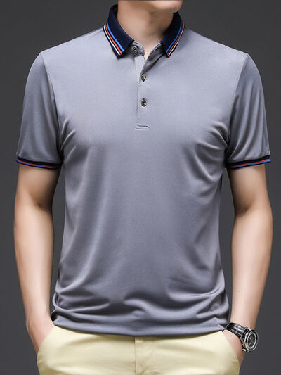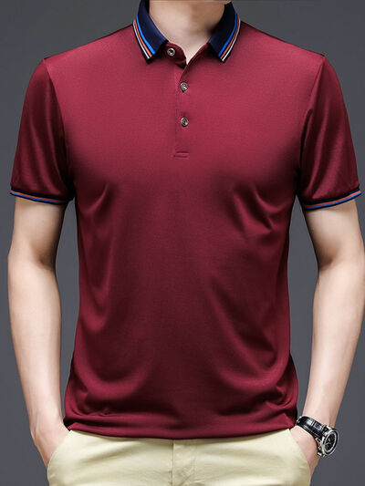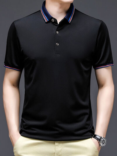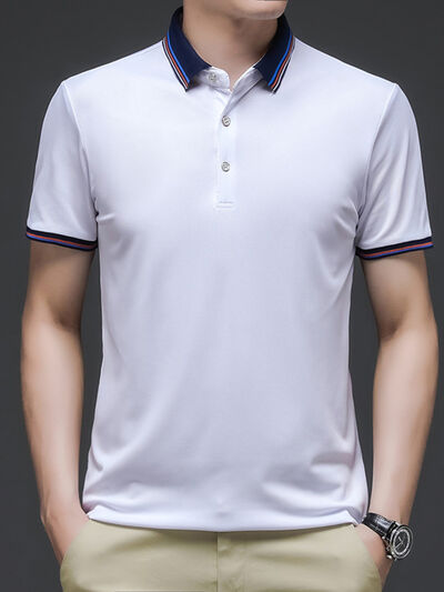 Men's Plus Size Contrast Striped Collar Short Sleeve Polo