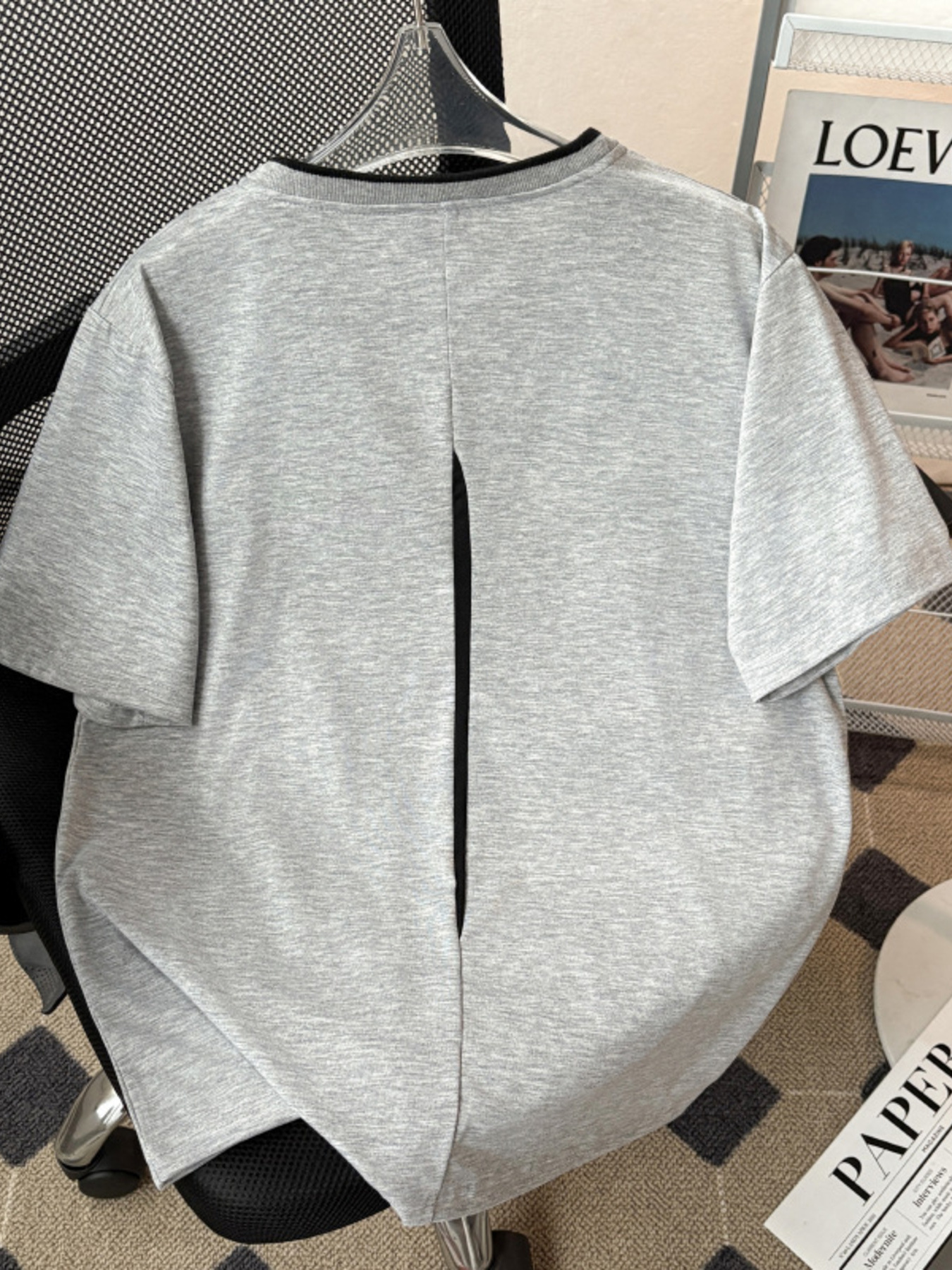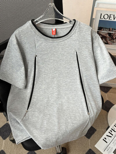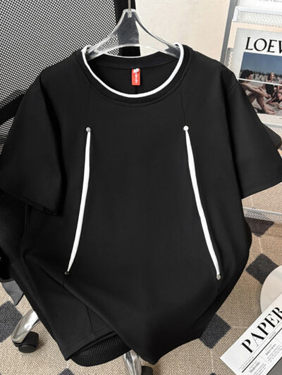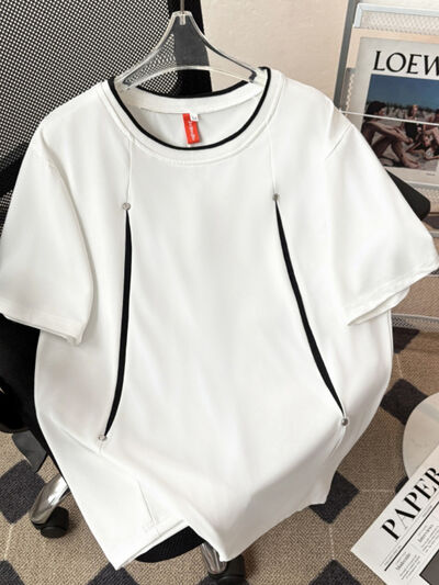 Men's Plus Size Contrast Trim Round Neck Short Sleeve T-Shirt