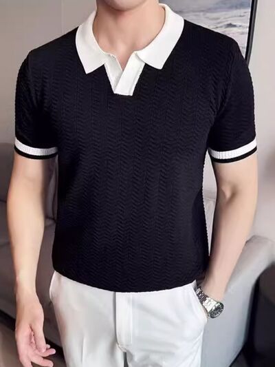 Men's Plus Size Contrast Trim Short Sleeve Polo