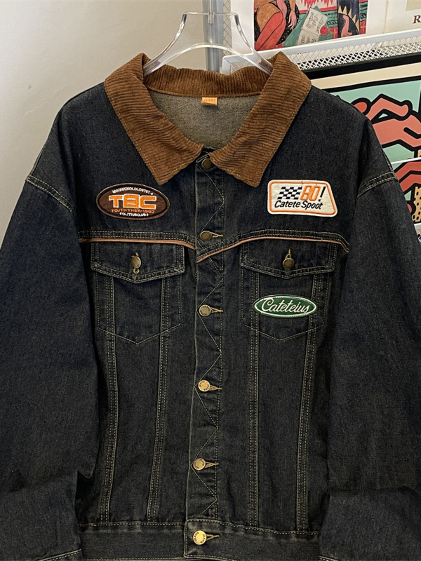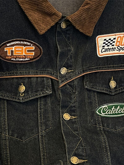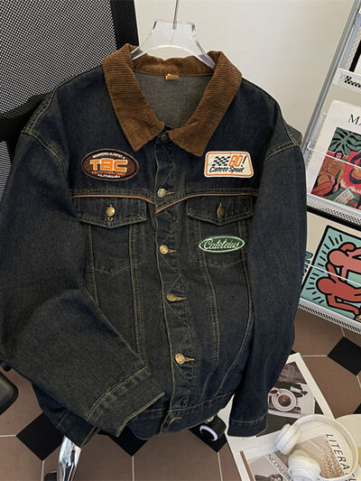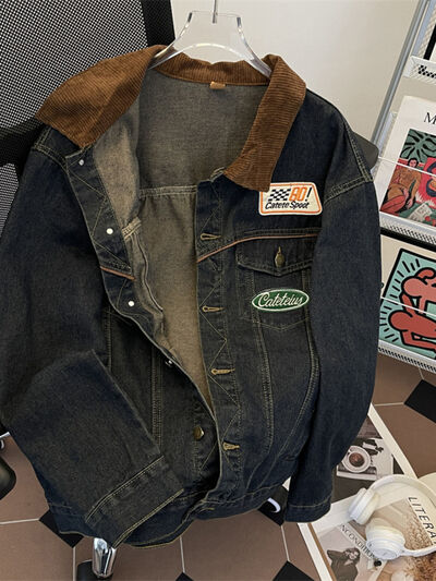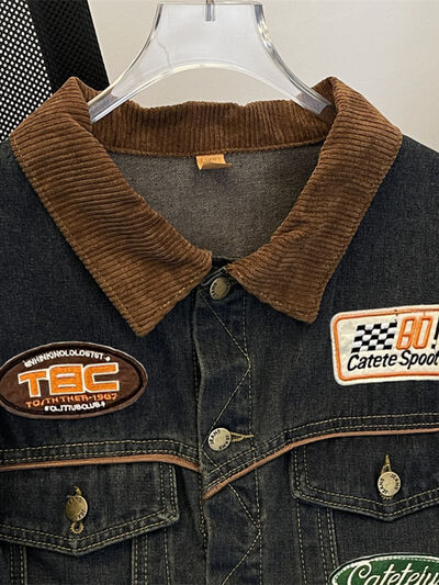 Men's Plus Size Corduroy Collar Button Up Denim Jacket