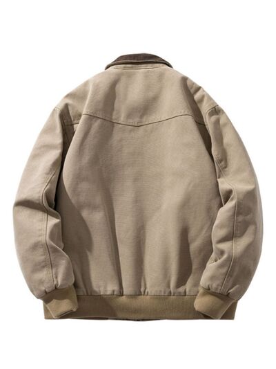 Men's Plus Size Corduroy Collar Zip-Up Jacket