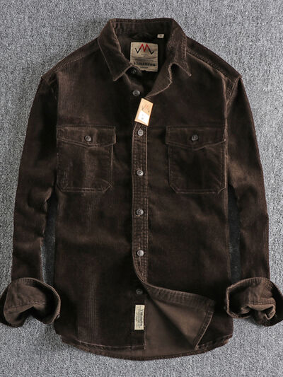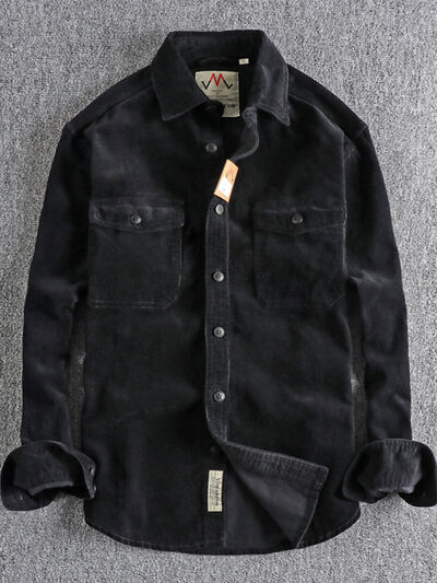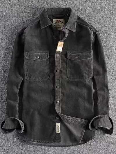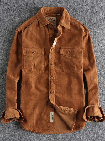 Men's Plus Size Corduroy Long Sleeve Button Up Shirt