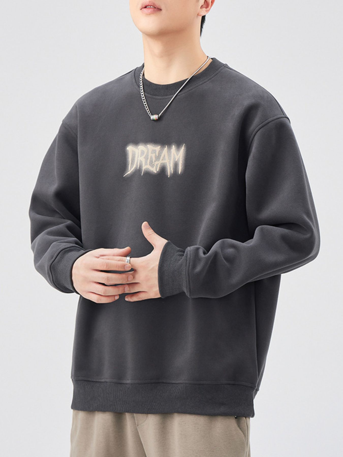 Men's Plus Size Crew Neck Dropped Shoulder Sweatshirt