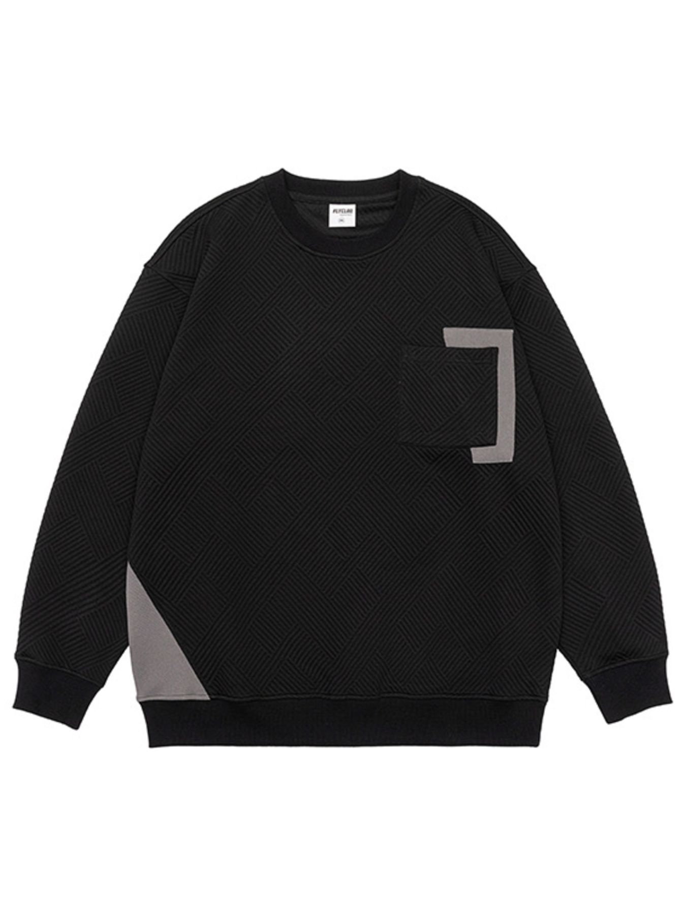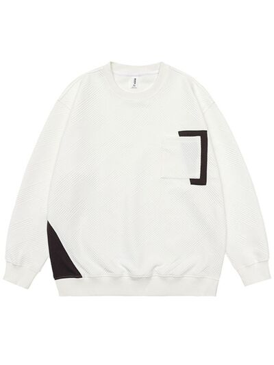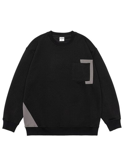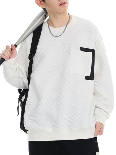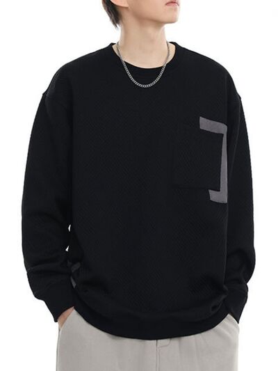 Men's Plus Size Crew Neck Sweatshirt with Pocket Detail