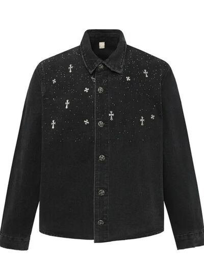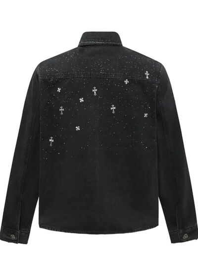 Men's Plus Size Cross Button Up Long Sleeve Denim Jacket