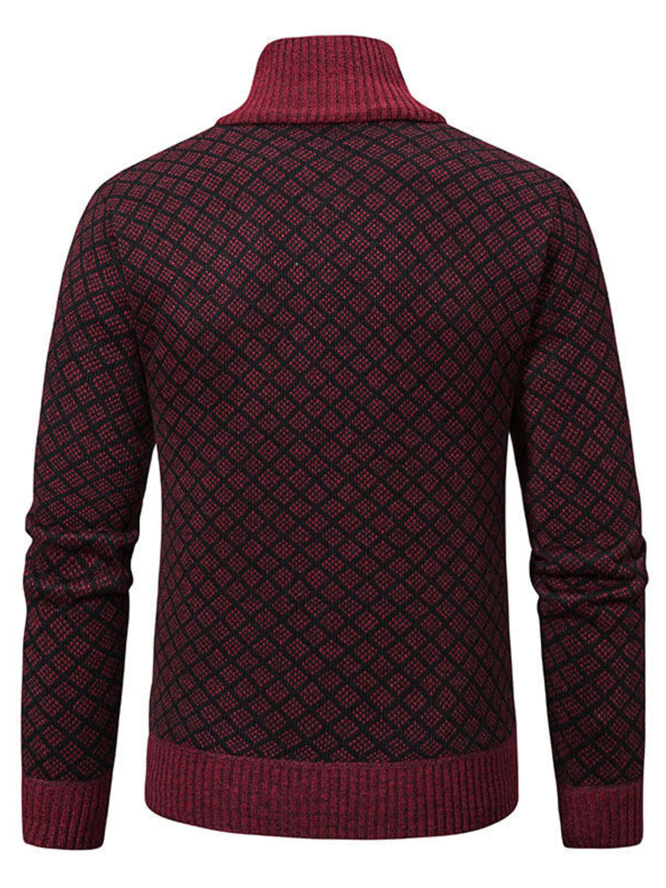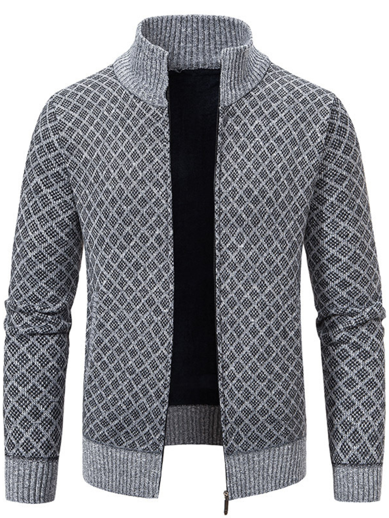 Men's Plus Size Diamond Pattern Zip-Up Knit Cardigan