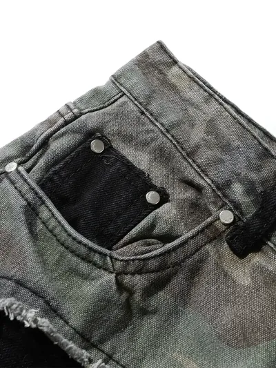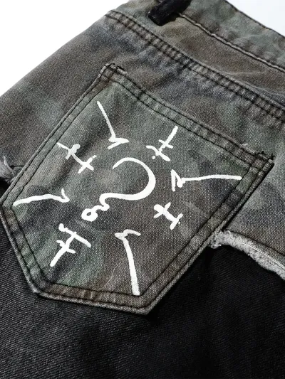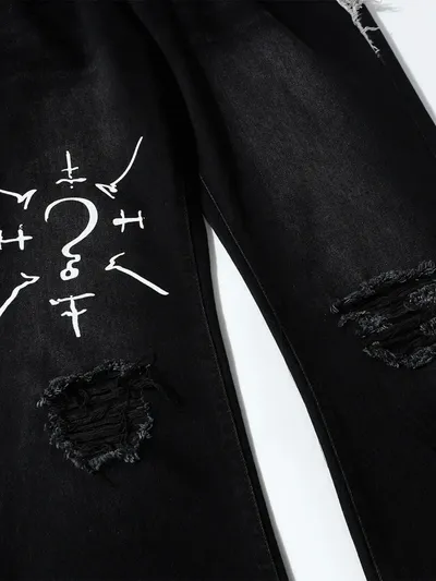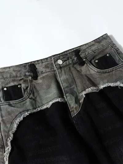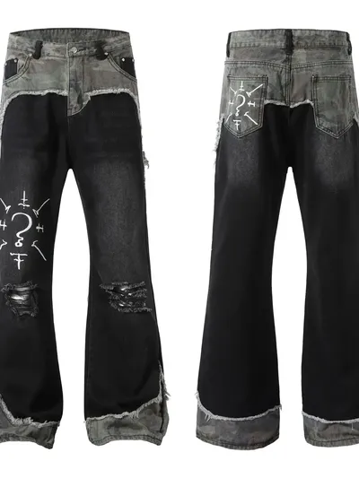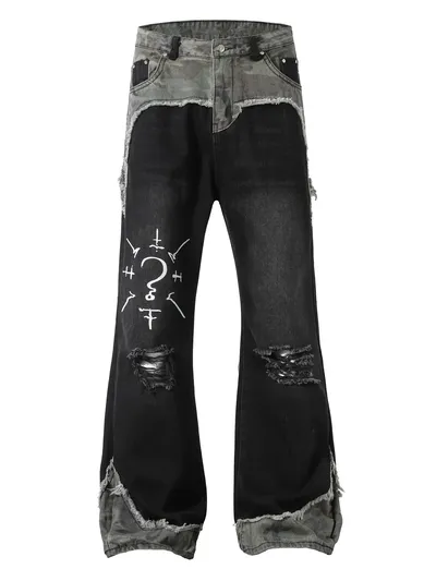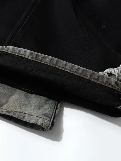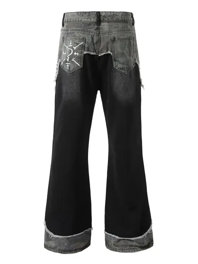 Men's Plus Size Distressed Bootcut Contrast Jeans with Raw Hem