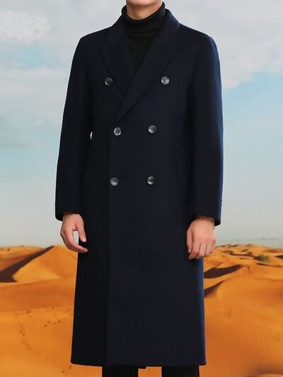 Men's Plus Size Double-Breasted Long Wool Coat