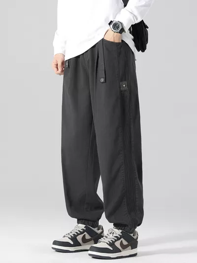 Men's Plus Size Drawstring Cargo Joggers with Pockets