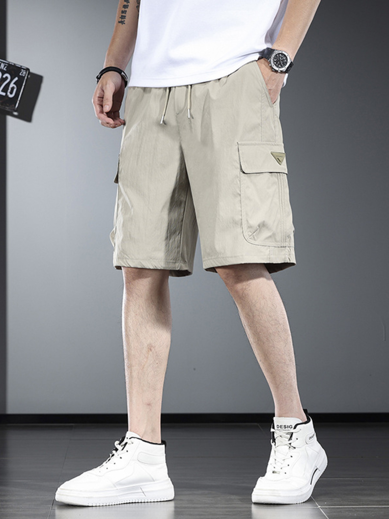 Men's Plus Size Drawstring Cargo Shorts