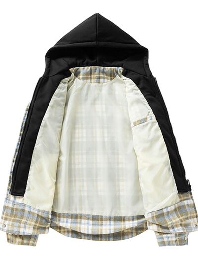 Men's Plus Size Drawstring Hooded Plaid Shirt Jacket