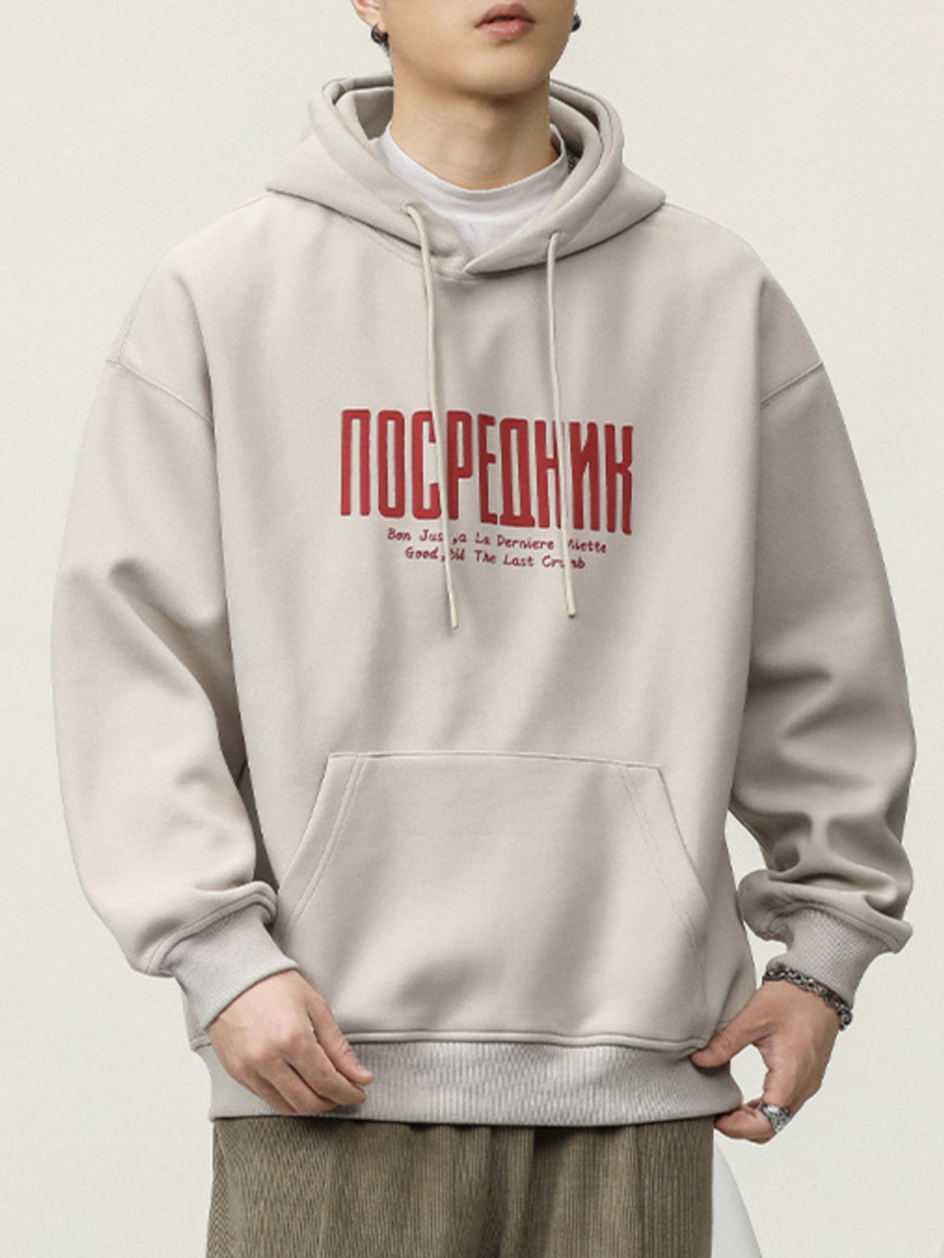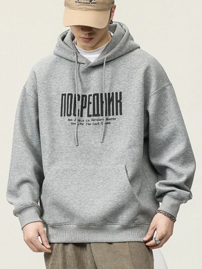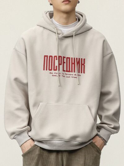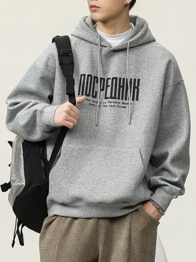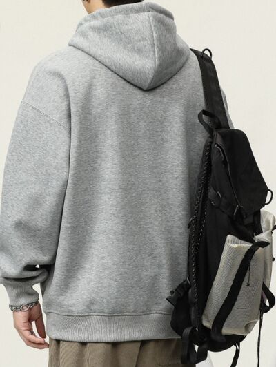 Men's Plus Size Drawstring Letter Dropped Shoulder Hoodie