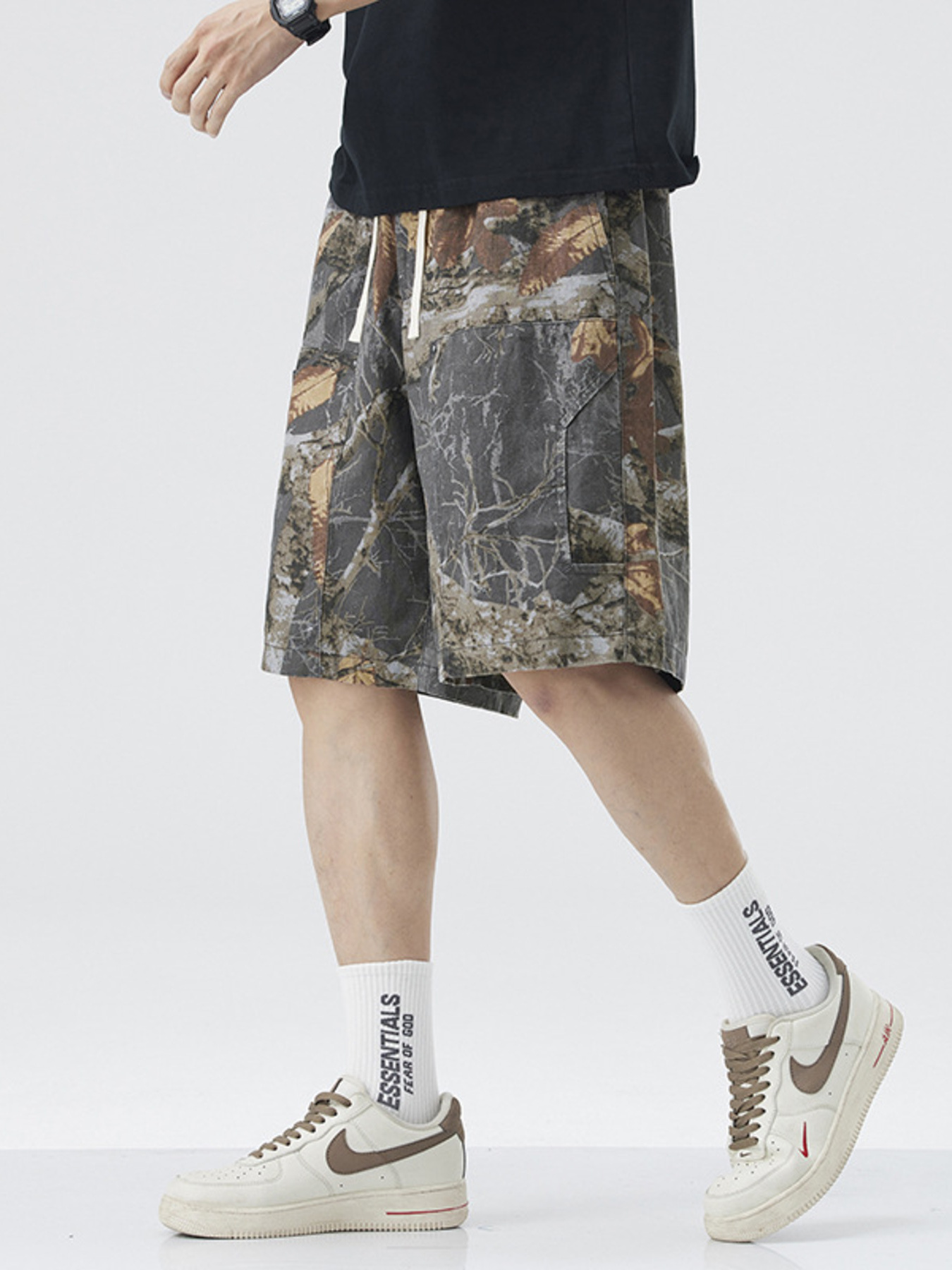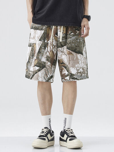Men's Plus Size Drawstring Printed Shorts