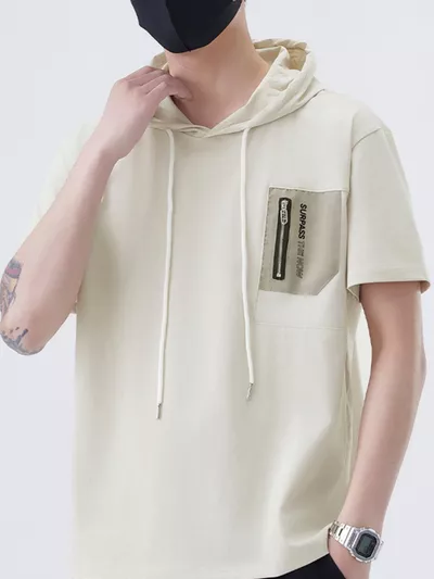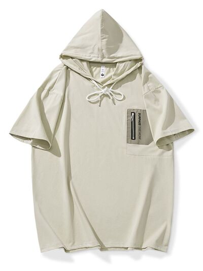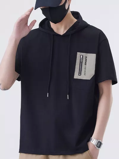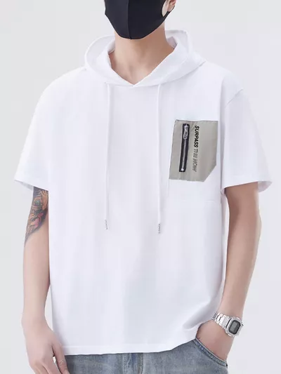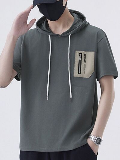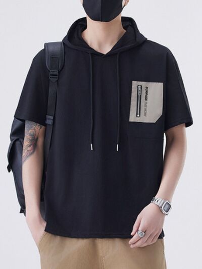 Men's Plus Size Drawstring Short Sleeve Hooded Top