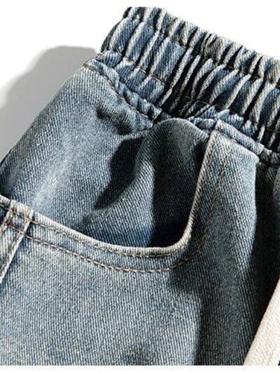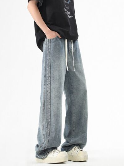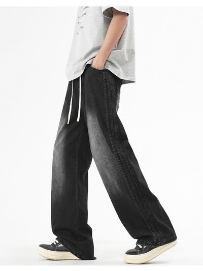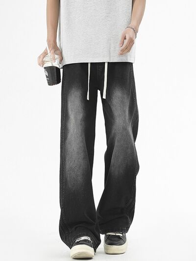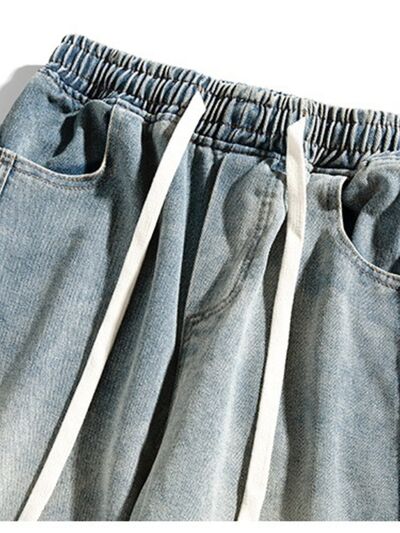 Men's Plus Size Drawstring Washed Wide Leg Jeans