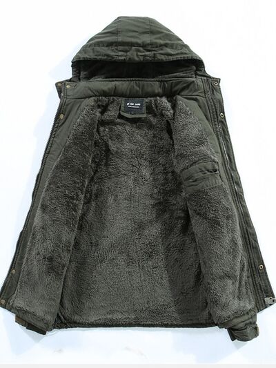 Men's Plus Size Drawstring Zip Up Hooded Jacket