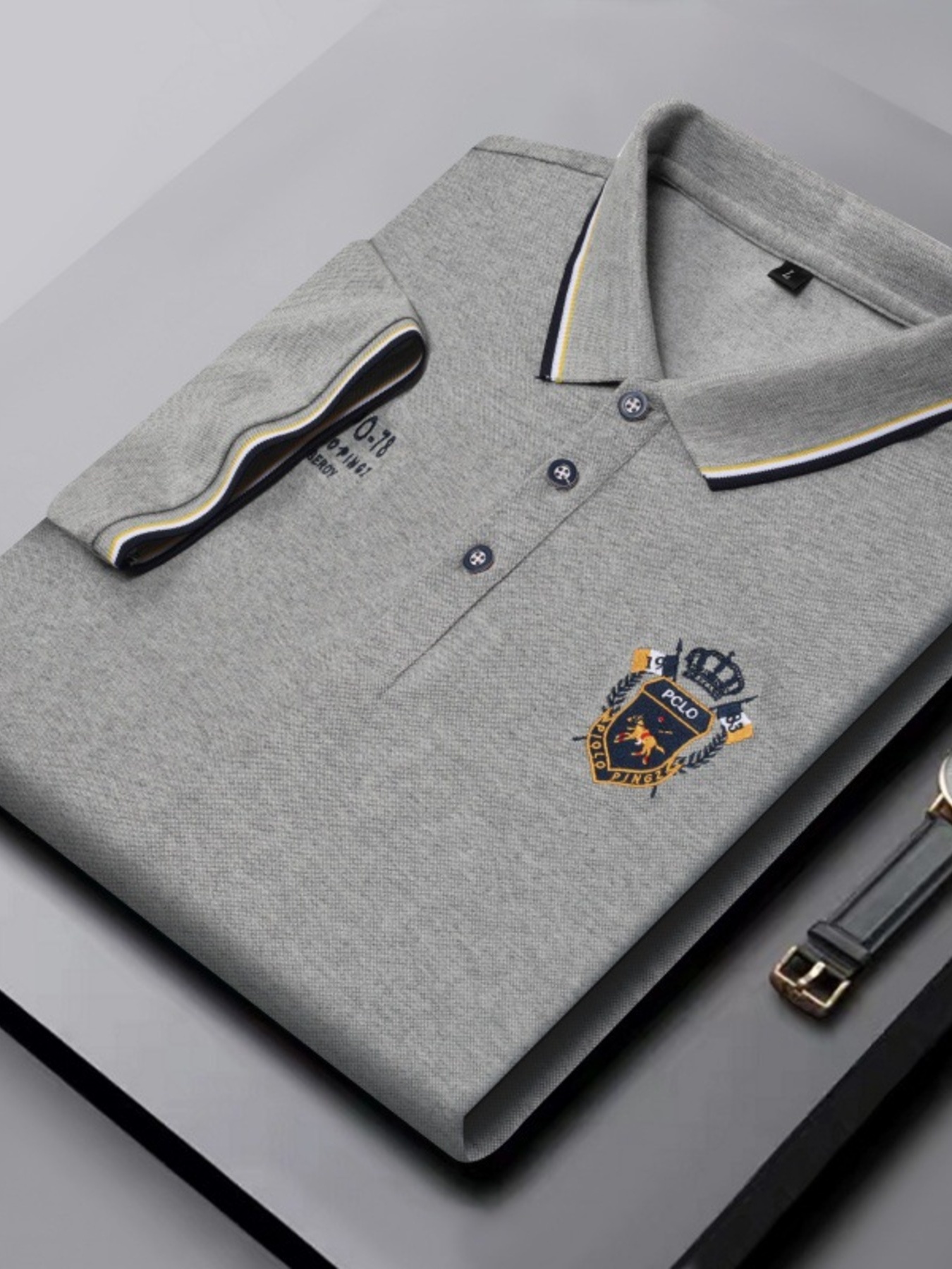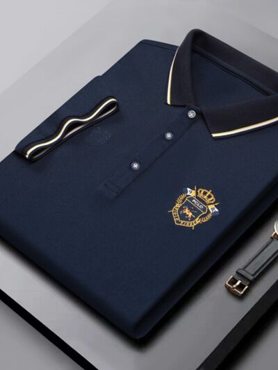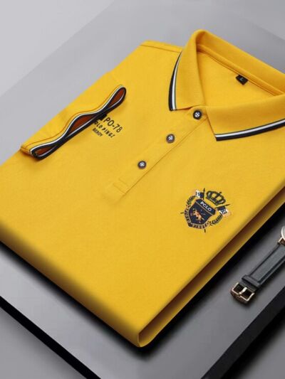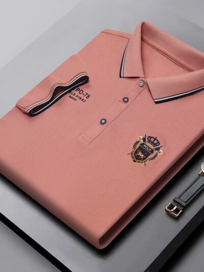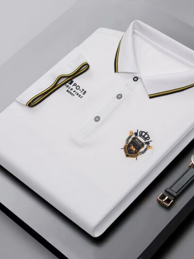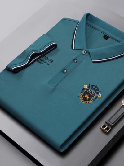 Men's Plus Size Embroidered Detail Short Sleeve Polo