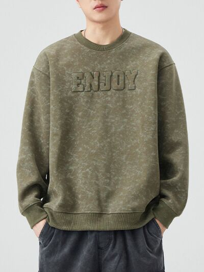 Men's Plus Size Enjoy Round Neck Long Sleeve Sweatshirt